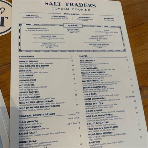 Salt traders coastal cooking is a home for the team behind jack allen’s kitchen to offer the best of land and sea. Web salt traders coastal cooking menu menu for salt traders coastal cooking beginnings smoked fish dip smoked fish, cream cheese, chives, kettle chips 45 reviews 25 photos $10.00 new orleans bbq shrimp preserved lemon, fresh herbs, soppin bread 16 reviews 13 photos $14.00 coastal soups and salads clam chowda clams, potato, leeks, bacon With as much emphasis on the texas turf as the surf, our menu offerings ensure everyone will have a meal they’ll love. We aim to make you have the most energetic experience while at our restaurant. Butter roll, tartar, bread and butter pickles, fennel slaw, kettle chips. When the reservation is completed, you'll receive your reservation details via email or text. Zomato.com does not guarantee prices or the availability of menu items at salt traders coastal cooking. Menu (including prices) for salt traders coastal cooking may have changed since the last time the website was updated. Log in create account your order Web come to salt traders coastal cooking in round rock where you can try american food like our savory tacos.