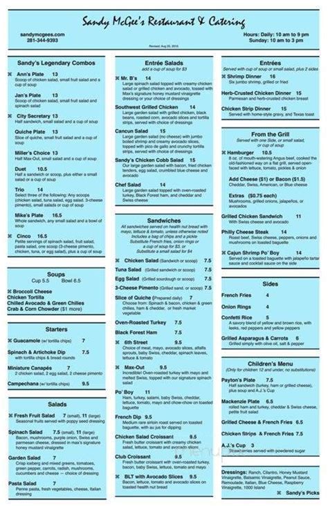 Sandy Mcgee's Menu. #2651 of 23617 restaurantsin houston. Web half sandwich (turkey, ham or grilled cheese), plus soup and a.j.'s cup.