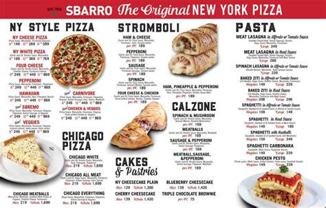 Sbarro Menu Along With Prices and Hours Menu and Prices