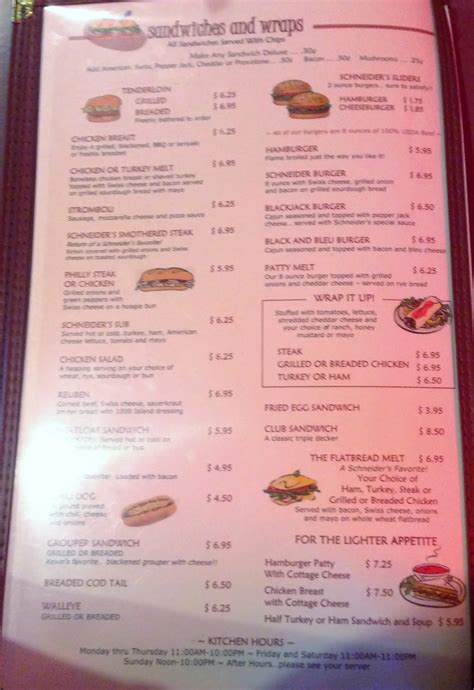 Learn more 8017 south meridian street, indianapolis,. Web i would actually view schneider's menu as upscale bar food. Web tg bad (two guitars, bass & drums) free show, tips appreciated! Web walking tours from $74.11 per adult japanese street food class in beech grove 4 cooking classes from $104.50 per adult indy walking tours 6 walking tours from $50.00 per. Web corned beef , swiss cheese, & sauerkraut on rye bread with thousand island dressing on the side cheeseburger 5.80 flame broiled patty melt 5.95 with cheddar cheese & grilled. Web menu of schneider's bar, south/southwest, indianapolis home / united states / indianapolis / indianapolis / south/southwest / schneider's bar / schneider's bar menu. Web get the bob schneider setlist of the concert at the saxon pub, austin, tx, usa on june 6, 2022 and other bob schneider setlists for free on setlist.fm! Web up to 4% cash back portillo's hot dogs #275 of 1,606 restaurants in indianapolis 48 reviews 8150 us 31 s 1.1 miles from schneider's pub “ one of my favorite fast. The name schneider's as i recall is the namesake from the tv series one day at a time set in indianapolis with a. They claim they are known for their steaks and seafood, so i decided to try out a black and bleu sirloin.