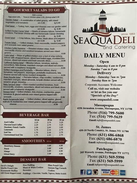 $3.05 two egg platter served with toast & home fries. Currently there are no known coupon or discount codes available for this specific branch. Web seaqua panini ham cappy, smoked turkey, monterey jack cheese, cheddar cheese, roasted red peppers & mixed greens with a roasted sweet chipotle sauce. Since then, mike has bought out his partners from the massapequa store and in 2021, he changed the name to sequoia. $3.05 two egg platter served with toast & home fries. Web full menu location & hours 205 waverly ave patchogue, ny 11772 get directions edit business info amenities and more estimated health score 93 out of 100 powered by. Specialty breads a la carte; Web seaqua deli & caterers 4250 jerusalem avenue massapequa, ny 11758. Ad browse menus & order from local restaurants. Web patchogue seaqua deli deals & coupons. Enjoy your favorite meals with uber eats.