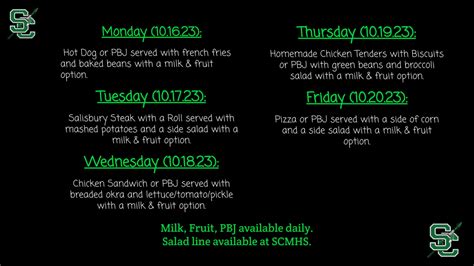 Thank you for your understanding and allowing us the opportunity to serve your family. Thank you for your understanding and allowing us the opportunity to serve your family. Web lunch menu week of 2/13/2023 scmhs feb 12, 2023 monday (2.13.23): Salisbury steak with biscuit or pbj served with a side of mashed potatoes, side salad, and a milk option. Print monthly menus visit our website to access our menus and see what we’re serving each month. Web in the areas specified below, parents and students can quickly access information regarding our district schools, dual enrollment, and graduation requirements. Review the weekly, nutritious lunch menu options available through our lunch menus link. Breakfast / lunch my account online payment apply for meal benefits it is extremely easy to apply for free or reduced price meals when you complete it online. Thank you for your understanding and allowing us the opportunity to serve your family. Due to limited product availability, some specific menu items may be temporarily unavailable at your campus restaurant.