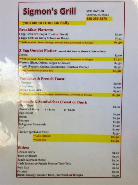Sigmon's Grill Menu . Sigmon's grill conover nc, sigmon's grill conover nc menu,. People found this by searching for: