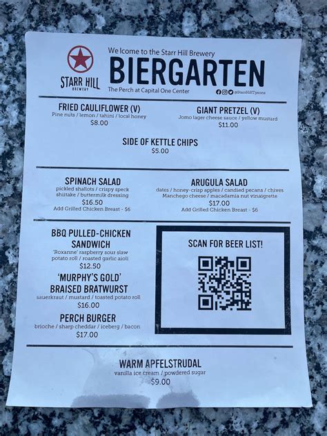 Starr Hill Biergarten Menu. The starr hill biergarten, located on top of capital one hall. Web our first night trying out this place and it seems like it has a lot of potential.