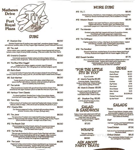Stu's Subs Menu. Meat, cheese & stuff $4.99. Includes the menu, user reviews, photos,.