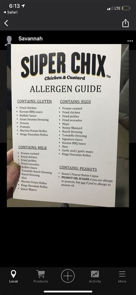 Allergen Guide Photo from Super Chix