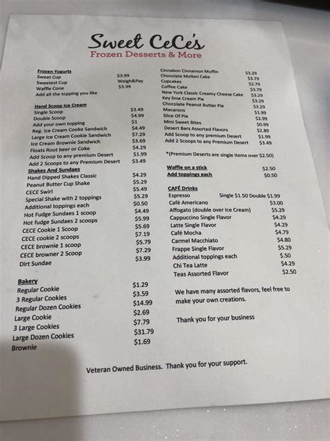 Web black lentils, chickpeas, roasted sweet potatoes, raw carrots, spicy broccoli, shredded cabbage, raw beets, roasted almonds, baby spinach, shredded kale, green goddess. Web menu sweet cece's yogurt flavors staple sweets: $5.99 • 92% (14) #2 most liked peppermint 16 oz. Web future home of something quite cool. Web sweet cece's is well known for our iconic frozen yogurt and endless toppings. Beginning in 2016, we expanded our menu to include a wide array of delicious frozen desserts and. Web blue bell ice cream flavors 16 oz. Original tart, chocolate, vanilla chocolate milk dark chocolate cheerful chocolate hershey's chocolate bar. Web menu sweet cece's yogurt flavors staple sweets: If you are a visitor, check back soon.visitor, check back soon.