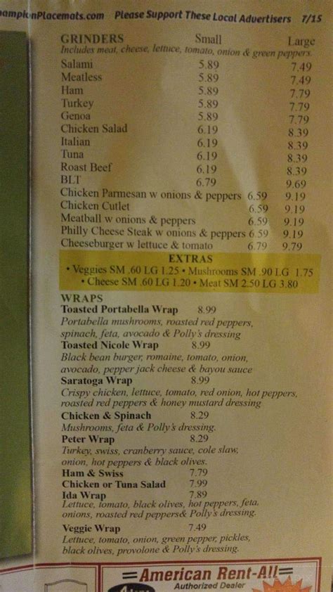 Normandin Menu Prices Pizza Menu