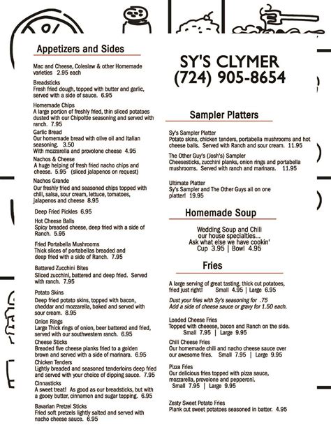 Sy’s Clymer, Pa Posts Clymer, Pennsylvania Menu, Prices