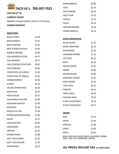 Ad ordering taco bell® just got easier. Web with taco bell’s completely customizable taco menu, the options are nearly endless! Web try taco bell new menu items available near you. From classic tacos and burritos to our epic specialties and combos, there’s something for. Already know what you like? Web the restaurant information including the taco al's menu items and prices may have been modified since the last website update. From classic tacos to burritos to our epic specialties and combos, there’s something for everyone on the taco. We are also observing health guidelines by cleaning as. Menu for taco al's provided by allmenus.com. Web great local family owned restaurant.the staff is always incredibly friendly and helpful, and the menu has a ton of good vegetarian options.
