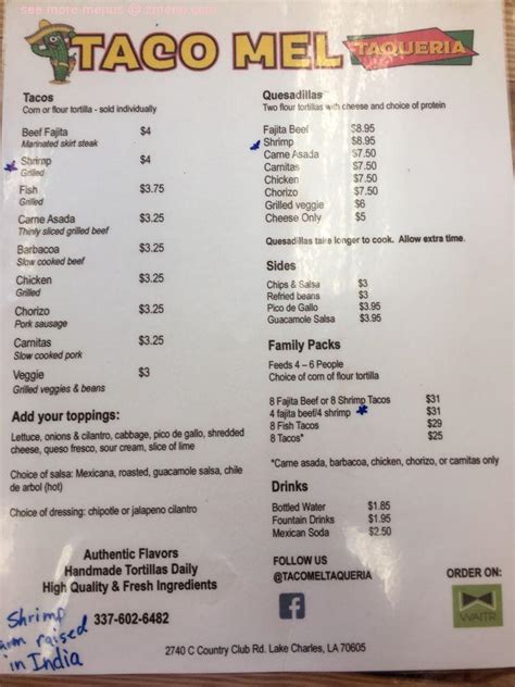 Taco Mel Sulphur Posts Sulphur, Louisiana Menu, prices