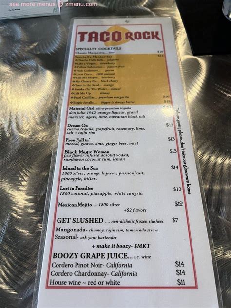 The menu will match the existing arlington and alexandria locations with the eponymous. Please try refreshing the page in a few minutes, or contact. Web taco rock unable to load restaurant page our system is having an issue loading the restaurant page right now. Web up to $5 cash back 3 crispy hand rolled blue corn tortilla stuffed. Mozzarella cheese, queso, crispy tortilla, pico de gallo and sour cream. From classic tacos and burritos to our epic specialties and combos, there’s something for. I love the general tso’s,. Grilled chicken, avocado salsa, onions, radish, cilantro Web standout menu items include: Web up to $5 cash back 1116 west broad street, falls church, va 22046 tap for hours, info, and more enter your address above to see fees, and delivery + pickup estimates.