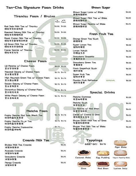 Tan-Cha Buford Menu. Training week is starting soon. Enter your address above to see fees, and.