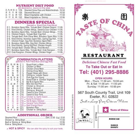 Taste Of China Exeter Menu. Web exeter, rhode island taste of china, 567 s county trail #109 taste of china menu taste of china/ menu add to wishlist add to compare #6 of 14 restaurantsin exeter #30 of 78 restaurantsin north kingstown taste of china menu menu added by users may 02, 2021 menus of restaurants nearby celestial menu #1 of 28 places to eat in. Web delicious chinese food eat in or take outplease note we do not offer delivery.