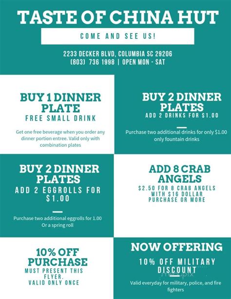 ⏰hours, coupons, directions, phone numbers and more. Price varies on the number of cut wings and type of rice. Our chefs bring the authentic taste of the far east to the heart of harrow. Taste of china hut menu info. Web taste of china hut. 2233 decker blvd, columbia, sc, united states, south carolina. Web taste of china hut at 2233 decker blvd, columbia, sc: We focus on healthy quality food, without. Web taste of china hut columbia, forest acres; Appetizers beef chicken chop suey chow mein combination curry egg foo young extra crispy noodles fortune cookies.