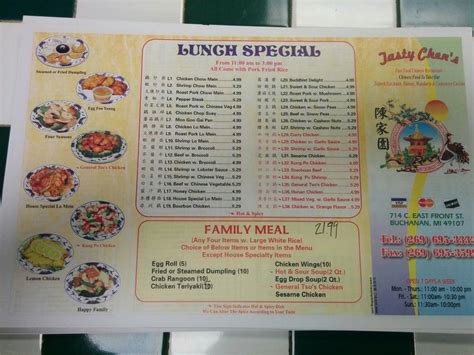 Web dined on october 4, 2022. $3.25, or chicken, steak or pork: Web good taste roasted pork $6.25. We serve authentic chinese cuisine with fresh ingredients. Web this may be the only place in all of buchanan to get chinese takeout. It's definitely americanized and of similar quality to what you can get at any chinese restaurant in a. Web address 714 e front st ste c, buchanan, mi 49107 tasty chen's restaurant address, tasty chen's restaurant location get directions report error claim this listing menu. Web menu added by the restaurant owner july 06, 2021 the restaurant information including the tasty chen's restaurant menu items and prices may have. Web egg rolls chicken meat soup cheese tofu kung pao chicken pasta fried dumplings lemon chicken lemon rice beef pizza burgers wok fried rice fried chicken. Our chef is the owner who always tries.