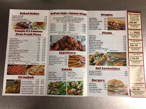 Temple Ii Pizza Menu. Web availability of fried wingstreet® products and flavors varies by pizza hut® location. Web menu menu for temple ii pizza hot sandwiches sausage parmigiana meatball parmigiana burgers hamburger 1 review cheeseburger hoagies tuna hoagie italian hoagie 1 review.