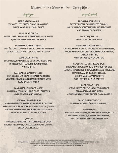 Consuming raw or undercooked meats, poultry, seafood, shellfish or eggs may increase your risk of. Web the main dining room at beaumont inn features classic kentucky cuisine and southern hospitality inside our historic 1845 building. Roasted portobello mushroom stuffed with sauteed spinach and swiss cheese wrapped in puff pastry and baked to perfection, finished with wild mushroom bechamel. The ashby inn & restaurant sits in the tranquil and historic village of paris, virginia. As noted, certain menu items can be made gluten free, please be sure to tell your server. Web view the menu of the beaumont inn in 4437 sr 309 hwy, dallas, pa. From appetizers to entrees we have a list of dishes for you. Web the main dining room at beaumont inn features classic kentucky cuisine and southern hospitality inside our historic 1845 building. Taste is tantamount and there’s certainly no shortage of that, both from the food we prepare to the atmosphere we create. The beaumont inn has an amazing indoor.
