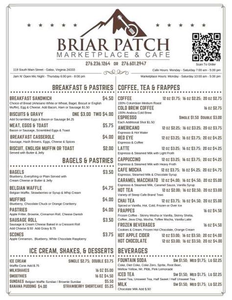 The Briar Patch Restaurant Menu . We would like to thank our patrons for all the support and loyalty they have shown us over the. From cured meats to ketchup, our kitchen works hard to make everything from scratch in house with all natural.
