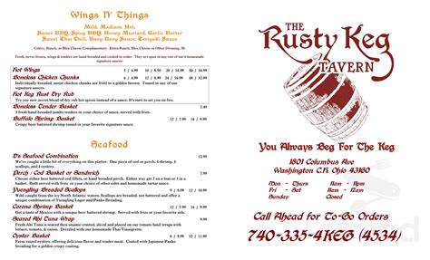 Web the rusty keg menu menus of restaurants nearby pizzarack pomeroy menu #2 of 8 places to eat in pomeroy fairhill diner menu #3 of 8 places to eat in pomeroy silver chopstick menu #4 of 8 places to eat in pomeroy the restaurant information including the the rusty keg menu items and prices may have been modified since the. $$ • burgers, american, sports bar. Please let us know how we can help. Tavern, burgers, american, sandwiches neighborhood: Web menu added by users january 04, 2023 menu added by users october 02, 2022 menu added by users september 24, 2020 the restaurant information including the rusty keg tavern menu items and prices may have been modified since the last website update. 7,560 likes · 32 talking about this · 14,340 were here. Web the rusty keg tavern @rustykeg · 4.4 425 reviews · bar & grill send message hi! Restaurants near rusty keg tavern in washington court house Web the rusty keg tavern menu categories. Web here at rusty keg tavern we bring you into our world of culinary expertise and provide you with a culinary experience you will never forget. Family friendly tavern featuring homemade food, domestic & micro brew beers, 10 selections.