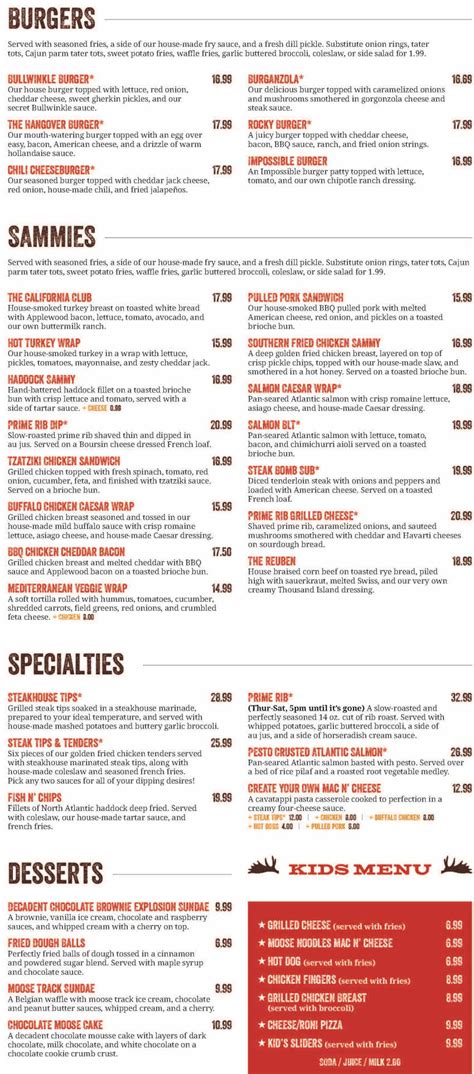 The social moose follow us to stay up to date with everything going on at the moose. View our menus a place to gather. Chicken, wings, pizza, american neighborhood: The social moose follow us to stay up to date with everything going on at the moose. Web menu is for informational purposes only. For the most accurate information, please contact the restaurant directly before visiting or ordering. With several locations across new hampshire, each of our thirsty moose restaurants has at least 50 beer lines, though many have more than 100 for your enjoyment. Please be aware that during normal kitchen operations involving shared cooking and preparation areas, including common fryer oil, the possibility exists for food items to. Web featuring an expansive selection of craft beers, alongside a diverse menu of expertly crafted cocktails, we’ve got you covered. Our delicious red sauce topped with mozzarella, meatballs, sausage, ham, ricotta and dusted with parmesan cheese and oregano.