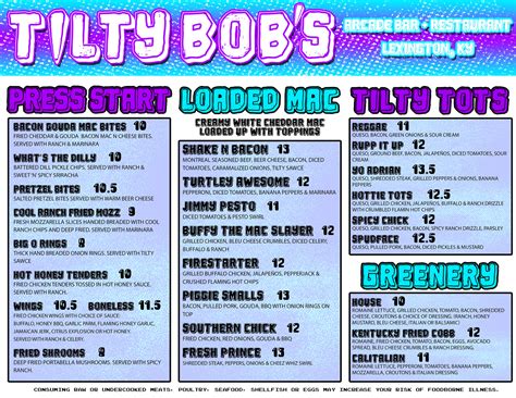 Tilty Bob's Menu. See activity, upcoming events, photos and more Web arcade bar & restaurant in lexington.