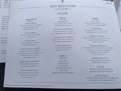 1,480 likes · 14 talking about this · 5,649 were here. Web menu at tiny boxwoods austin restaurant, austin home / usa / austin, texas / tiny boxwoods austin / tiny boxwoods austin menu tiny boxwoods austin menu add to wishlist add to compare #548 of 7322 restaurants in austin proceed to the restaurant's website upload menu menu added by the restaurant owner september 06,. We admit, a friendly voice on the line has always been our preference, but you may also book online and we’ll be delighted to see you either way. Stop by 1305 west 35th street, austin, texas 78703 512.220.0698 lunch: The vanilla cake was pretty (but a little dense, but the frosting and lemon curd filling was delicious! Web thank you very much tiny boxwoods austin for your generosity!!! All of us from smca er appreciate the gesture!!! Web menu is for informational purposes only. Menu items and prices are subject to change without prior notice. For the most accurate information, please contact the restaurant directly before visiting or ordering. For breakfast my favorite thing is the salmon toast and chia seed pudding, it will turn you into pudding!