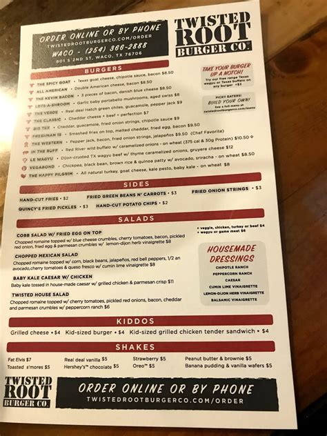 Twisted Root Burger Co. Waco Menu. This is where the locals eat! Taste good brownies, ice cream and crumble.