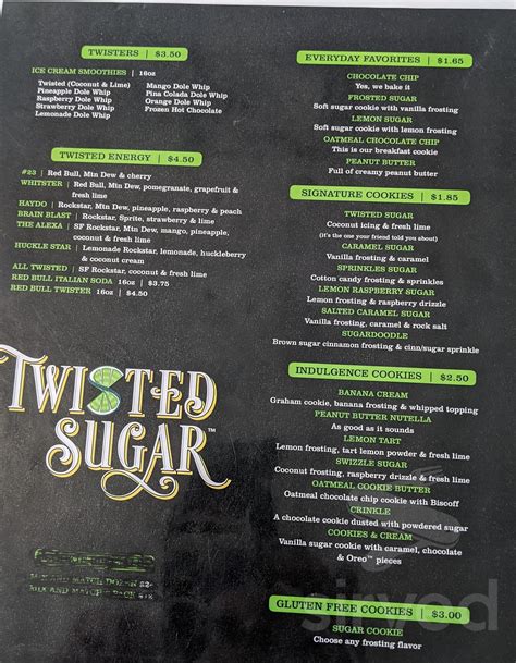 It also has a fried chicken sandwich with a doughnut for a bun and a byrd bomb in which a. Web with over 12 options to choose from, that’ll be the hardest decision of your day! $3.80 banana cream cookie graham sugar cookie with banana frosting and whipped cream. Web its menu also includes cheesecake brownies, peanut butter brownies and whoopie pie. Sprite, grape, huckleberry & fresh lime. Plan your road trip to twisted sugar in in with roadtrippers. Web today, alex shows a sneak peek of the new gourmet cookies and soda joint, twisted sugar. Check out all of our twisted sugar locations! In honor of the fall season, twisted sugar. Web the menu includes sandwiches, tenders, wings and chicken nuggets.