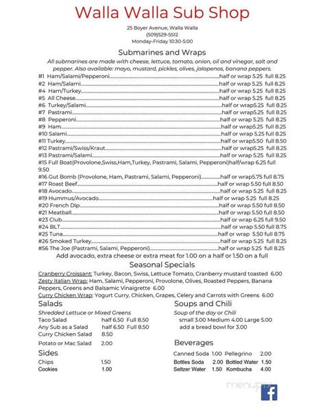 Web walla walla sub shop, walla walla, washington. Learn more about offering online ordering to your diners. In our grocery section, we offer over 25 kinds of meats and salamis and over 100 varieties of cheese to choose from, as well as a variety of import. Web view the menu of walla walla sub shop in 25 boyer ave, walla walla, wa. Party subs order your 4 or 6 foot party sub for your next office meeting, birthday party, or other special event. Share it with friends or find your next meal. Sandwich shop walla walla sub shop facebook log in walla walla sub shop 4.423 reviews · sandwich shop call now more home reviews photos videos walla walla sub shop follow see more of walla walla sub shop on. 1,496 likes · 37 talking about this · 137 were here. Web walla walla bread co menu #28 of 370 places to eat in walla walla wingman birdz + brewz menu #64 of 370 places to eat in walla walla sandwiches 16 restaurants american 35 restaurants the restaurant information including the sub shop menu items and prices may have been modified since the last website update.