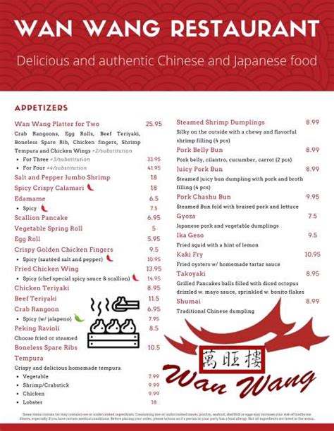 Under the helm of our executive chef brian wong, enjoy modern dainty creations to traditional cantonese classics including our famous peking. Web wan wang restaurant, worcester, massachusetts. Crab rangoon, chicken fingers or egg roll and served with pork fried. Web wan wang locate in worcester, ma, serves traditional chinese food, ramen noodle, asian cuisine, & authentic szechuan style fare, made from scratch right here in our kitchen. Web see menu write a review for wan wang restaurant. Lastest menu prices, online order & reservations, along with restaurant hours and contact. Crab rangoons, egg rolls, beef teriyaki, boneless spare rib, chicken fingers, shrimp tempura and chicken wings. Worcester's most authentic asian restaurant. Salt and pepper jumbo shrimp $20.95. Web wan wang restaurant menu.