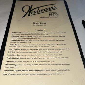 Weidmann's Restaurant Menu . Web tomatoes, basil and fresh mozzarella drizzled with balsamic vinaigrette. Web view the menu of weidmann's in 210 22nd ave, meridian, ms.