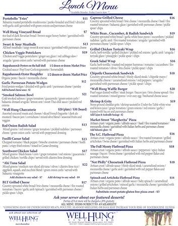 Well Hung Vineyard Menu. Service is typically slower here but was very good and waitress attentive or a very. well hung vineyard, casual dining contemporary american cuisine. Perfect to compliment any of our wines.