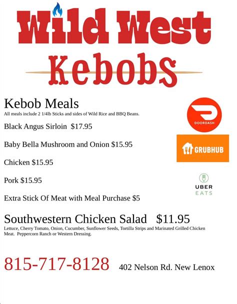 Wild West Kebobs Delivery Menu Order Online 402 Nelson Rd New Lenox