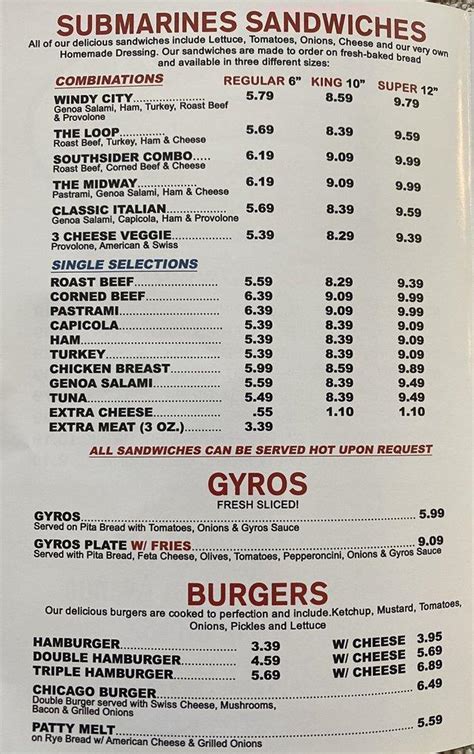 $ • sandwich shops, hot dogs, ice cream, frozen yogurt. Served with lettuce, tomato and mayo. Web served with lettuce, tomato and garlic mayo. House, french, ranch, thousand island, and low cal french athenian salad $5.89 feta cheese, olives, tomatoes, cucumbers, peppers and iceberg lettuce tossed in our house dressing garden salad $6.39 Full review best in the city fast food burgers restaurant menu frequently mentioned in reviews debra deborah submarine the midway a hotdog to gyro plate butter garlic fries soaked Also see photos and tips from visitors. House, french, ranch, thousand island, and low cal french. Sliced honey roasted turkey breast, honey ham and roast beef topped with cheddar cheese. House, french, ranch, thousand island, and low cal french athenian salad feta cheese, olives, tomatoes, cucumbers, peppers and iceberg lettuce tossed in our house. Web windy city | fast pizza delivery | menu attention: