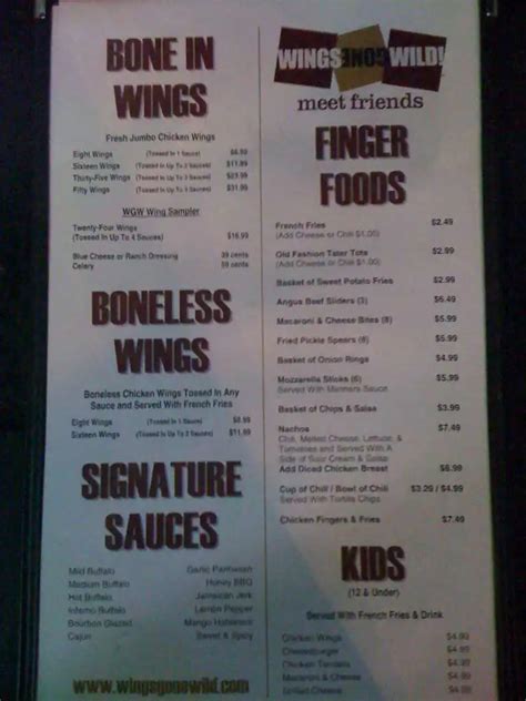 Web wings gone wild menu. Web the sauce was interesting. Spicy chicken wings 6 pc. Web chicken wings spicy or mild. Wings are over cooked to the point that they are very dry and there is very. Overall a very tasty wing. 7oz french fries, mayo, lettuce, tomato, buffalo on patty. Web wingz gone wild + carib burger | facebook wingz gone wild + carib burger 4.8 20 reviews · comfort food restaurant call now more home menu reviews photos follow. $$ • chicken wings, american, fast food. It was buffalo but with a new mexico twist.