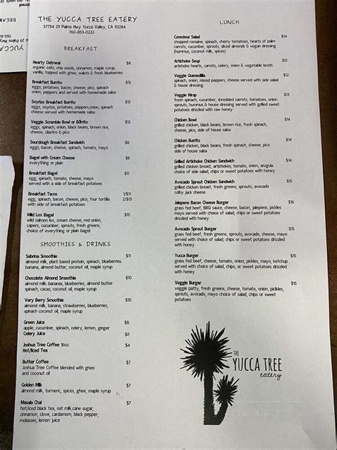 Web the yucca tree eatery. Web the yucca tree eatery is located in california state. On the street of twentynine palms highway and street number is 57754. Eatery's breaksfast & brunch menu online. Web romaine blend, feta, artichoke hearts, kalamata olives, cucumbers, pepperoncinis, red onion, grape tomatoes. Web online menu of the yucca tree eatery, yucca valley, ca home california san bernardino county yucca valley the yucca tree eatery view menu read reviews write review. Add any chicken, steak, shrimp. Web the yucca tree eatery (@theyuccatreeeatery) • instagram photos and videos theyuccatreeeatery follow 42 posts 1,670 followers 251 following the yucca tree. Web the restaurant information including the the yucca tree eatery menu items and prices may have been modified since the last website update. From pancakes to benedicts & burritos, we're serving up a better breakfast with creative twists!