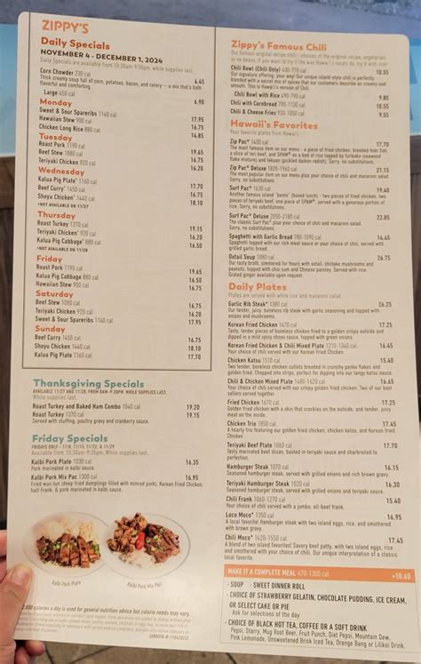 Online Menu of Zippys Kailua Restaurant, Kailua, Hawaii, 96734 Zmenu