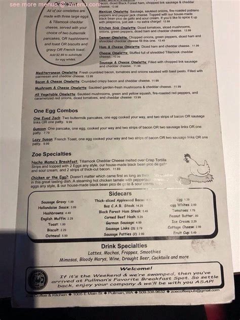 Online Menu of Zoe Coffee & Kitchen Restaurant, Pullman, Washington