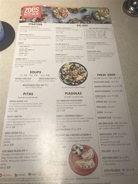 Zoes Kitchen Menu Birmingham Al. Choose a protein or veggie entrée, paired with a fresh side and greek salad mediterranean chicken flat grilled, caramelized onions, braised white beans, side greek salad, pita bread $9.29 chicken kabobs^ The menu is packed full of delicious mediteranian options, there is salads, sandwichs and entrees.